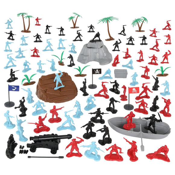 Tim Mee Pirates of Treasure Island - Red 28pc Plastic Toy Figures Boat Chest