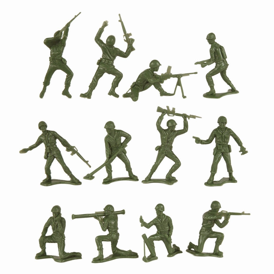 An American Classic is back in action. This pack of 100 Tim Mee Toy Plastic Army Men is proudly manufactured in the United States, and includes 50 tan and 50 Olive-Green troops for maximum play value. There's about 12 different figures and all your old favorites are here, including minesweeper, bazookaman, radio operator, 60mm mortar, light MGner, kneeling rifleman, flame thrower, crawling rifleman, prone rifleman, bayonet fighter, and officer with binoculars. Figures stand up to 2.1 inches tall and are approximately 1:35 scale. Made from slightly flexible LDPE plastic with medium detail, and very little flashing. Originally produced by Processed Plastic Co. (Tim Mee Toy's parent company at the time) around 1968, these figures were probably the first to depict US Infantry troops of the Cold War era with contemporary equipment. These are real plastic heroes, meant to be set up, knocked down, picked up and played with for years to come. Little Green Army Men have even been inducted into the National Toy Hall of Fame. Packed in clear bag with insert card and recommended for ages 5 and up.