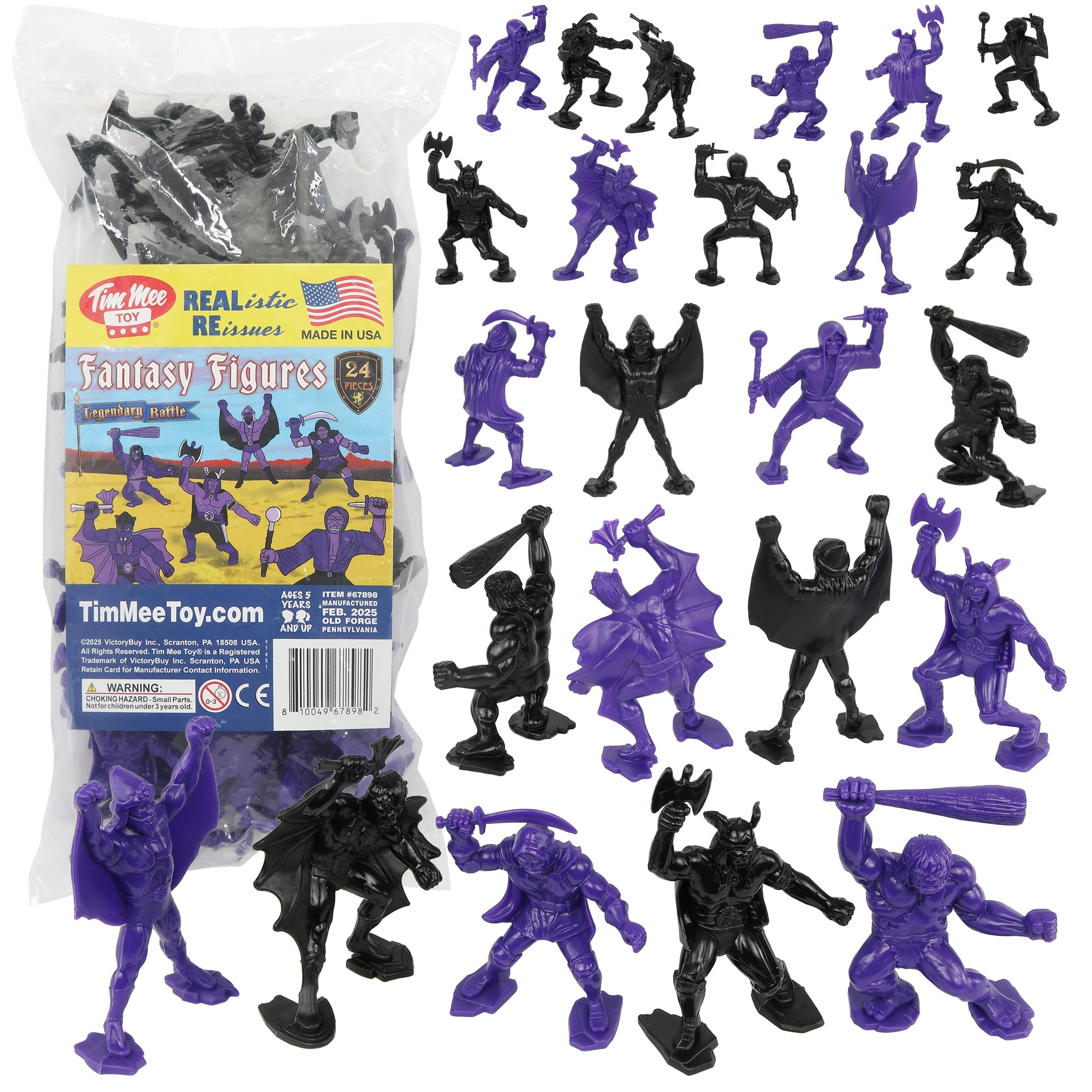 From the depths of imagination long-lost warriors return... This bag of 24 Tim Mee Toy Legendary Battle Fantasy Figures is proudly manufactured in the United States and includes 12 Purple and 12 Black figures for maximum play value.