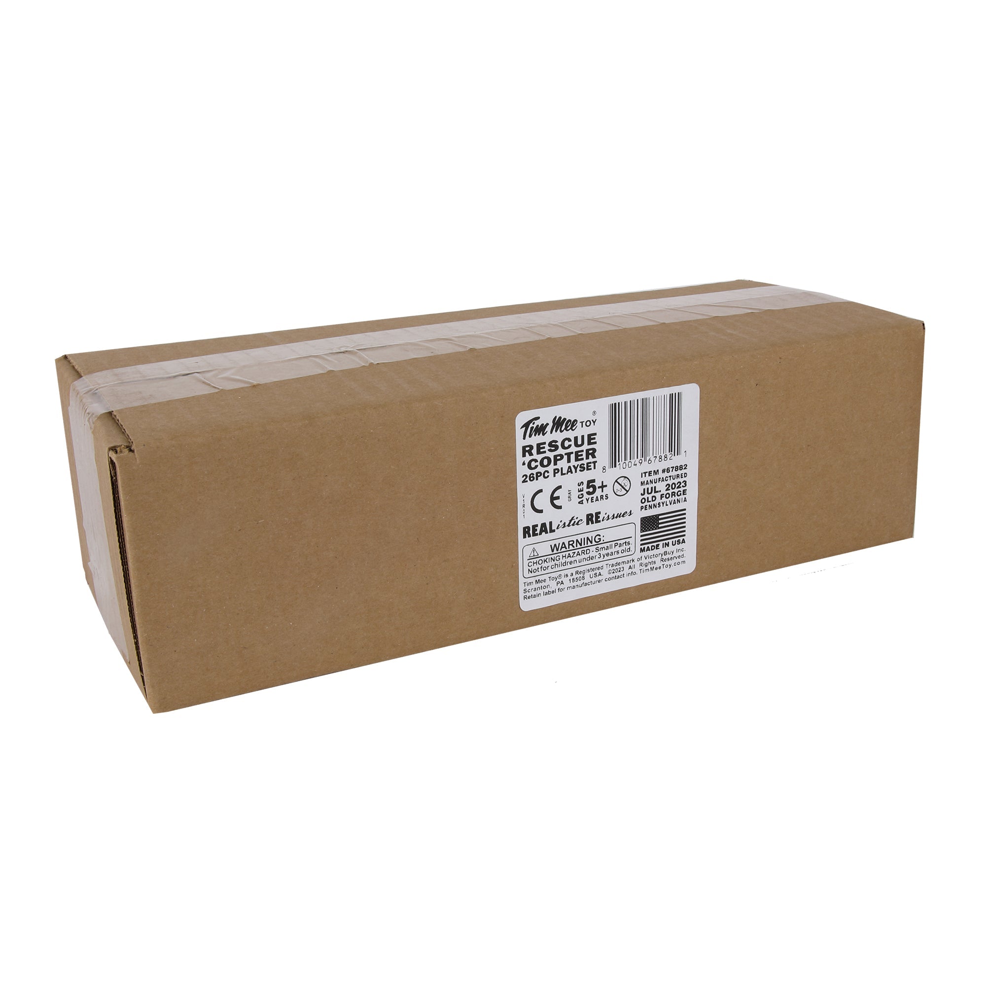Air Extraction for your Plastic Army Men has arrived. The Tim Mee Toy Military Rescue 'Copter is once again proudly manufactured in the United States and available as this 26 piece Set. Set includes a Sea King Helicopter, American flag with base, and 2 dozen M16 Soldier figures. The chopper is modeled after the Sikorsky SH-3 and features spinning main rotor and stationary landing wheels. The fuselage measures 13 inches long, 3.25 inches tall and 3.75 inches wide. The aircraft is made from slightly stiff Gray color HDPE plastic and the Soldiers are made from slightly flexible LDPE plastic, both have very little flashing. The helicopter is approximately 1:48 scale and the figures are 1:35 scale. The first version of this aircraft was produced in the 1970s by Processed Plastic Co. (Tim Mee Toy's parent company at the time) and was later modified to add the open side hatch. Production was discontinued in the 1980s and wasn't available again until it was reissued in 2013. Includes sticker sheet with military and medical marking options. These are real American Made toys, meant to be set up, knocked over, picked up and played with for years to come. Snap-together assembly requires some hand strength, so adult assembly is suggested. Packaged in a plain brown corrugated box and recommended for ages 5 and up.